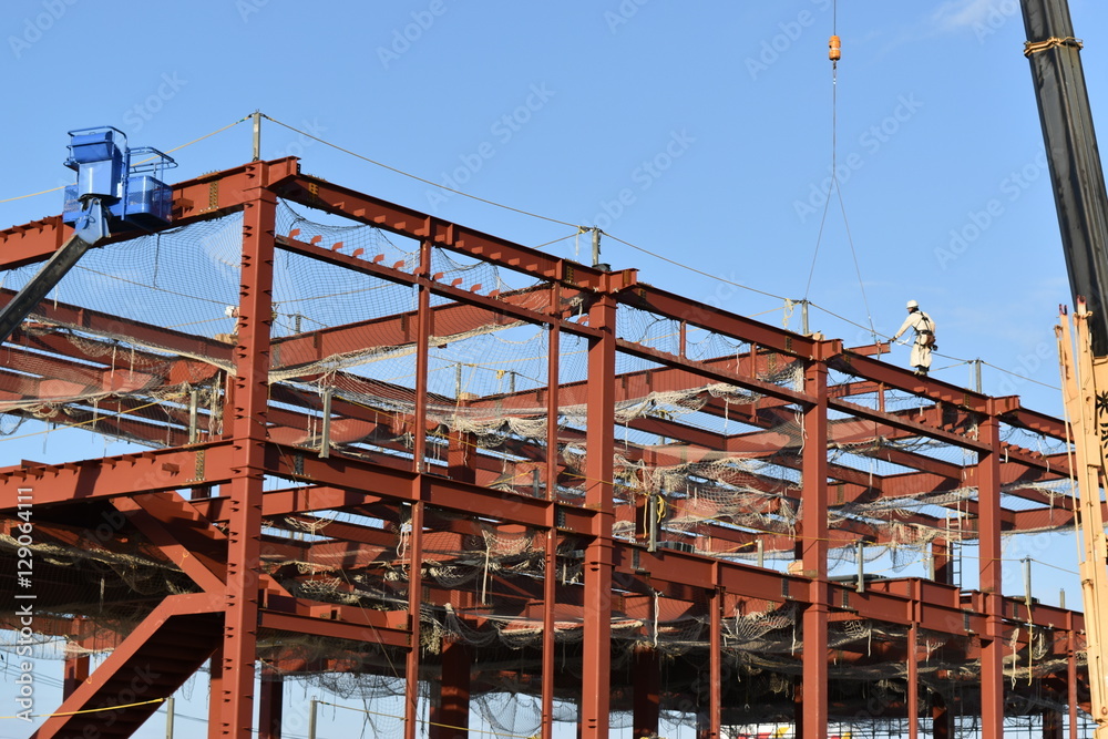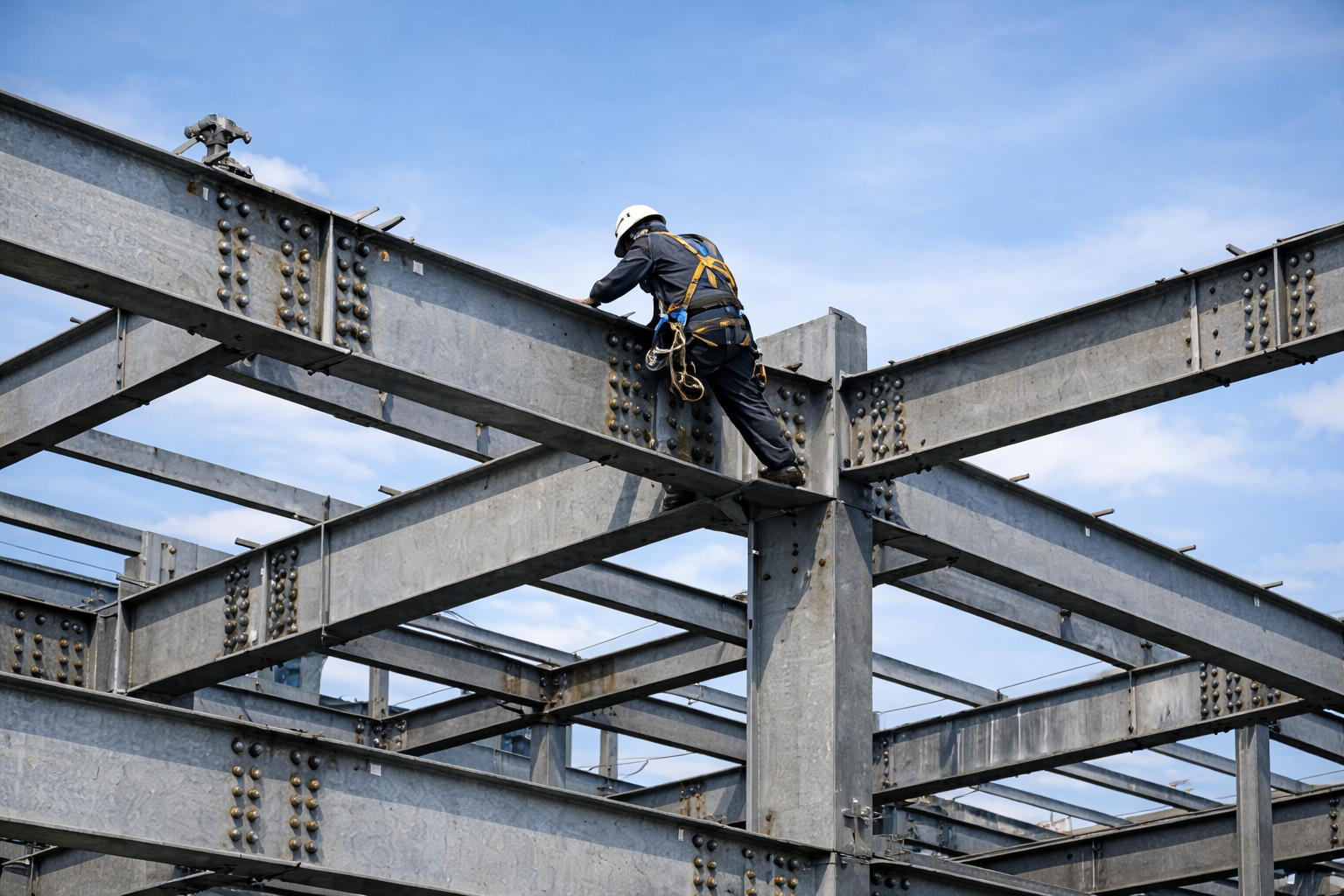 建築物の骨組みとなる鉄骨工事を中心に、製作から施工まで一貫して対応しています。